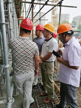会议第一项议程是由公司副总经理方跃飞同志带队,观摩杭政储出【2011】34号地块商业金融用房工程采用的承插型盘扣式钢管支模架体系。该工具式支模架体系无论从选材标准还是搭设质量水平,在公司在建工程中都处于前列,具有较大的学习借鉴和推广意义。各项目部参会代表在观摩过程中热情高涨,纷纷上前近距离查看支模架搭设细节,同时也与34号项目部负责人及公司工程部技术人员广泛而深入地交换了意见。此次观摩会再次践行了公司“树标杆、学标杆”管理制度,以展示推广亮点的方式帮助其他项目部 “学先进、找差距、补短板、促发展”。