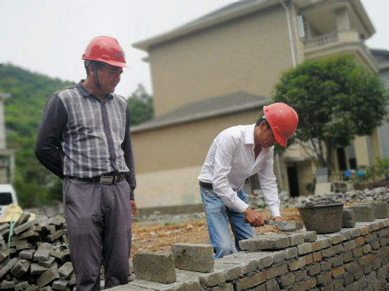我们碰到老邵时,他刚头上拆完线从医院回到项目部工作。我们问老邵:“听说你从春节到现在,都一直在工地上,从没休息过?”老邵头一扬:“哪有休息天,每天没日没夜做,都觉得时间不够。不止是我,我们项目部这么多管理人员,从工程开始就没休息过。”是什么原因让大家心甘情愿地放弃休息,坚守在工地上?是美丽乡村的建设任务让大家放不下,更是由于作为项目施工核心的老邵以身作则,深深影响了整个项目管理团队,甚至感召了其他的村民。老邵带队伍,因地制宜,用人所长,生活上关怀爱护,工作中要求严格。团队的成员,老邵是深思熟虑过的,有两位土木工程专业科班出身,有相关项目的施工管理经验,又是双浦本地人,熟悉当地情况,在工作开展中更便利。